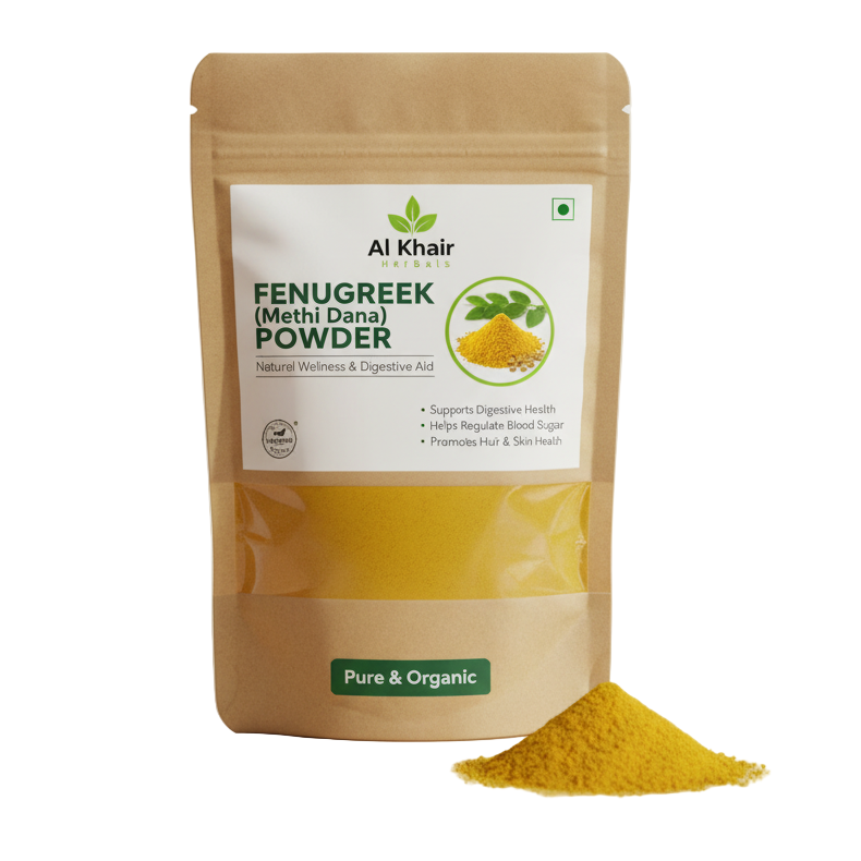 Al Khair Herbals Fenugreek (Methi) Powder is a 100% natural herbal powder packed with essential nutrients, vitamins, and antioxidants. Traditionally used for improving digestion, promoting hair growth, controlling blood sugar, and enhancing skin health. Perfect for daily consumption or as a natural ingredient in hair and skin care routines.