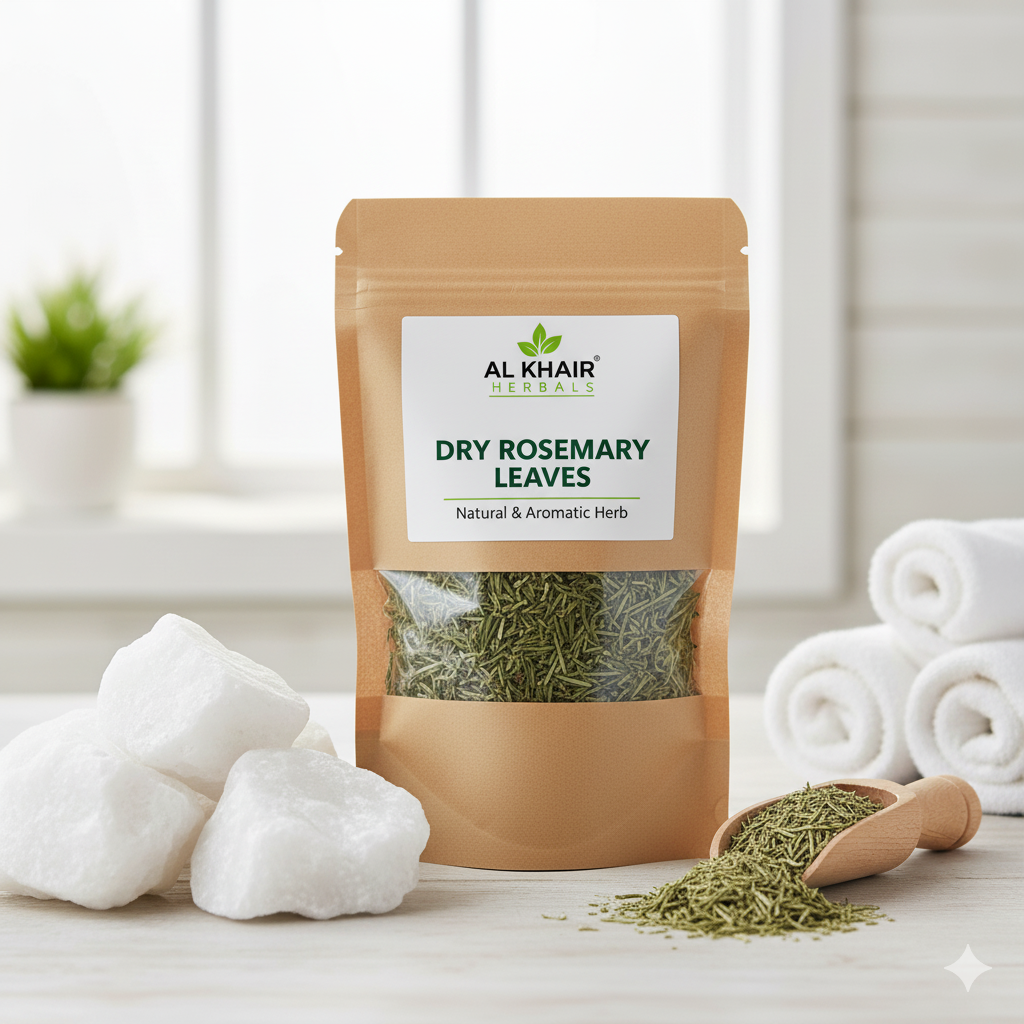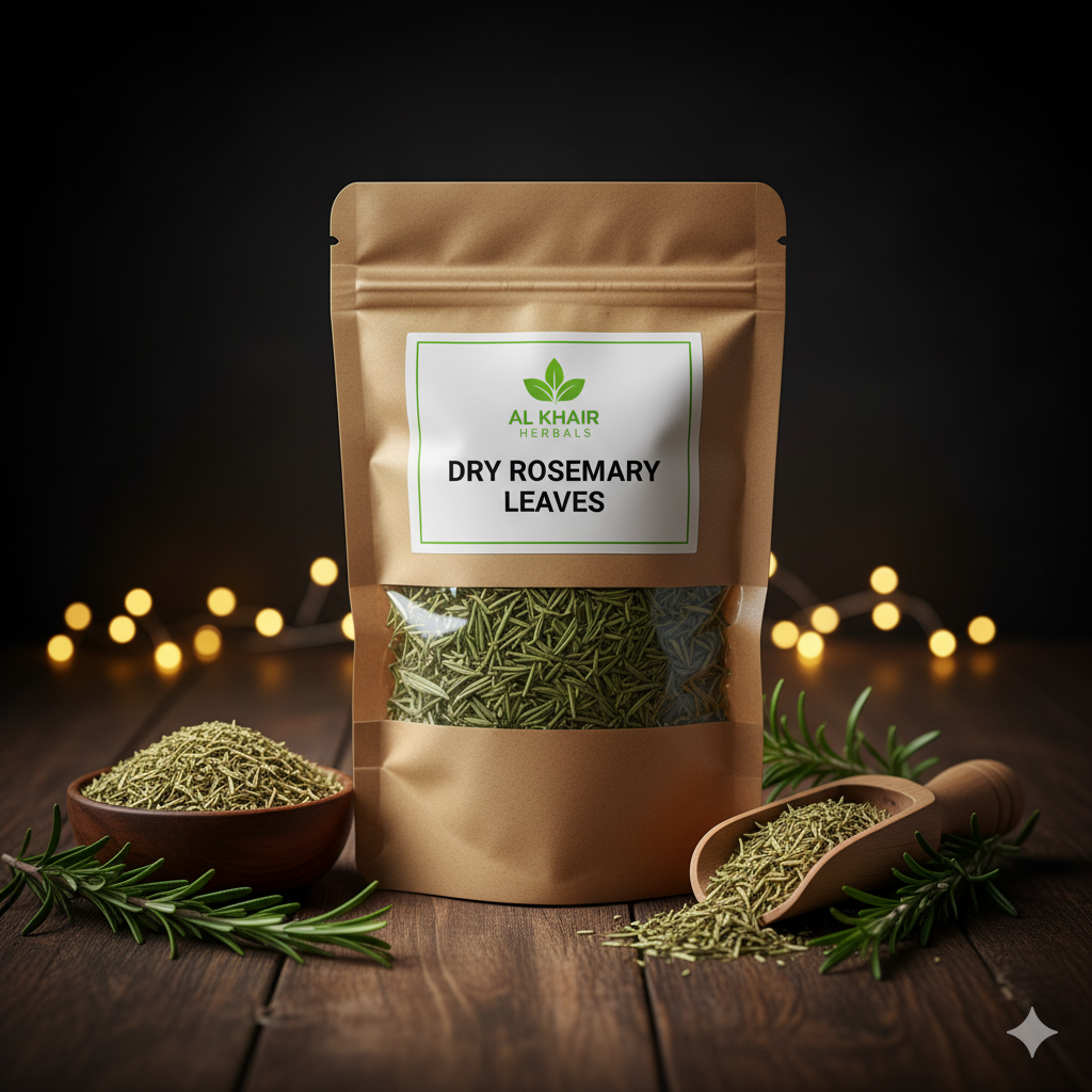 Al Khair Herbals Rosemary is a pure and aromatic herb known for its powerful health and beauty benefits. It helps stimulate hair growth, reduce dandruff, and improve memory and focus. Perfect for herbal teas, hair oils, and skincare recipes. 100% natural, chemical-free, and packed with antioxidants for total wellness. 🌿✨
