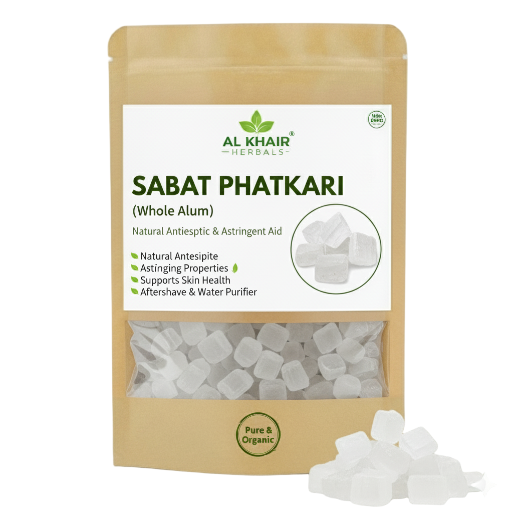 Al Khair Herbals Sabat Phatkari (Natural Alum Stone) is a pure and natural mineral known for its powerful antiseptic and skin-tightening properties. It helps prevent body odor, soothe razor burns, and treat minor cuts. Also beneficial for acne, oily skin, and natural deodorant use. 100% pure, chemical-free, and safe for daily use. 🌿✨