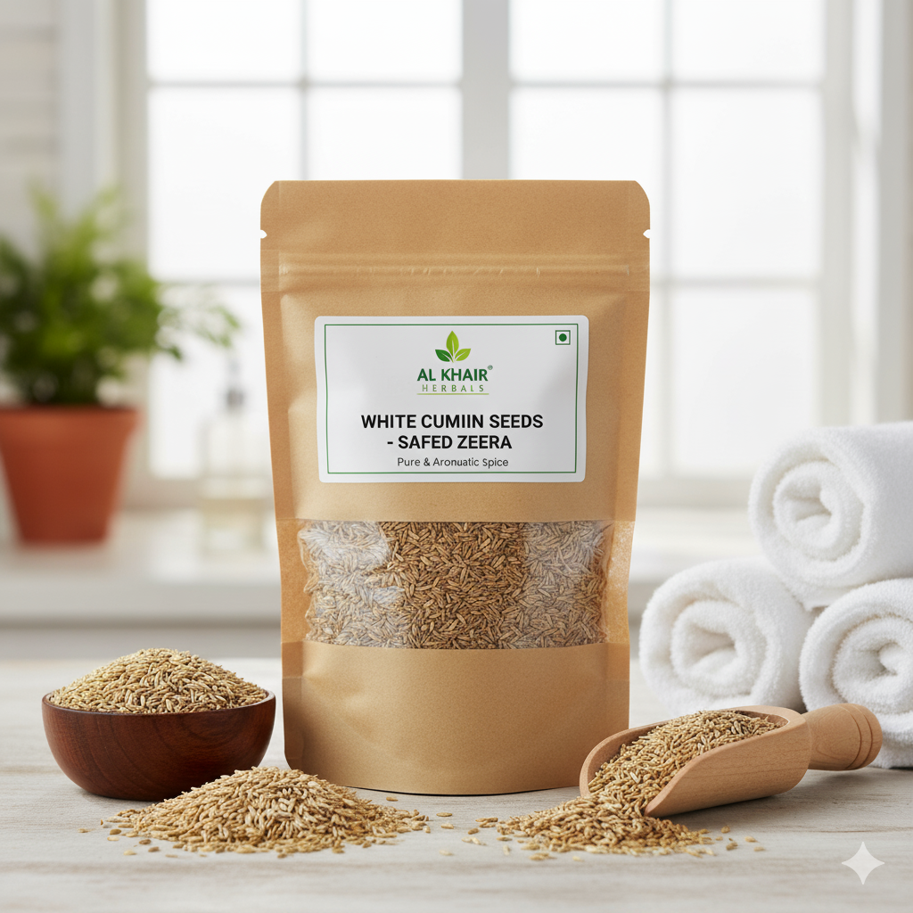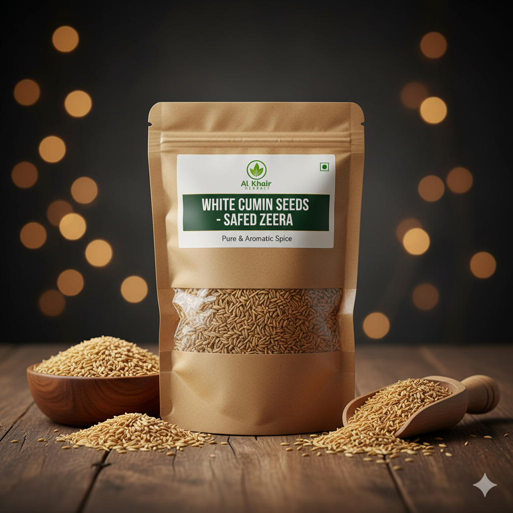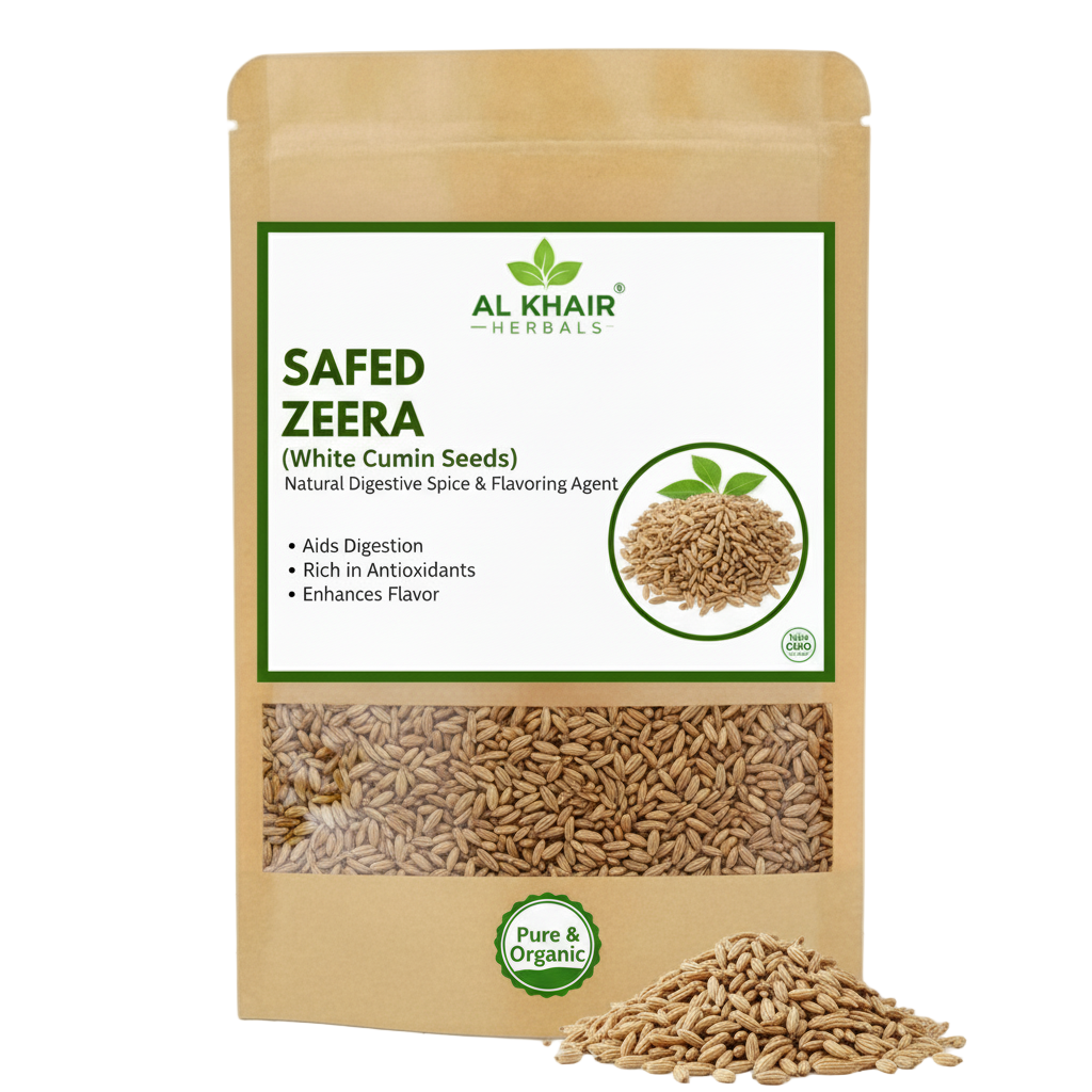 Al Khair Herbals Safaid Zeera (White Cumin Seeds) is 100% pure and naturally dried, known for its rich aroma and powerful digestive benefits. It helps improve metabolism, reduce bloating, and enhance the flavor of your dishes. Perfect for cooking, herbal remedies, and traditional medicines. Pure, chemical-free, and hygienically packed for freshness. 🌿✨
